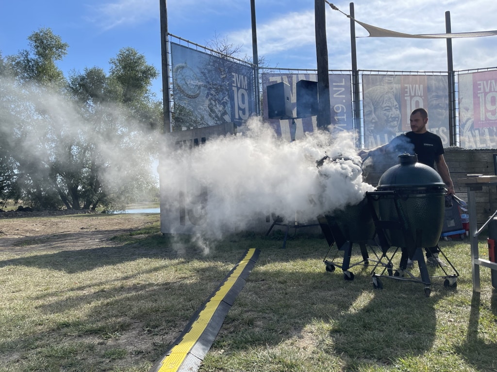 Rond vijf uur werd de BBQ ontstoken, waarna vanaf half zes de aanwezigen konden genieten van heerlijke gerechten vanaf de immense BBQs. Wanneer de aanwezigen zich ook door de sponsoren en onze stand heen sloegen, konden ze zelfs een drankje bestellen bij de bar.